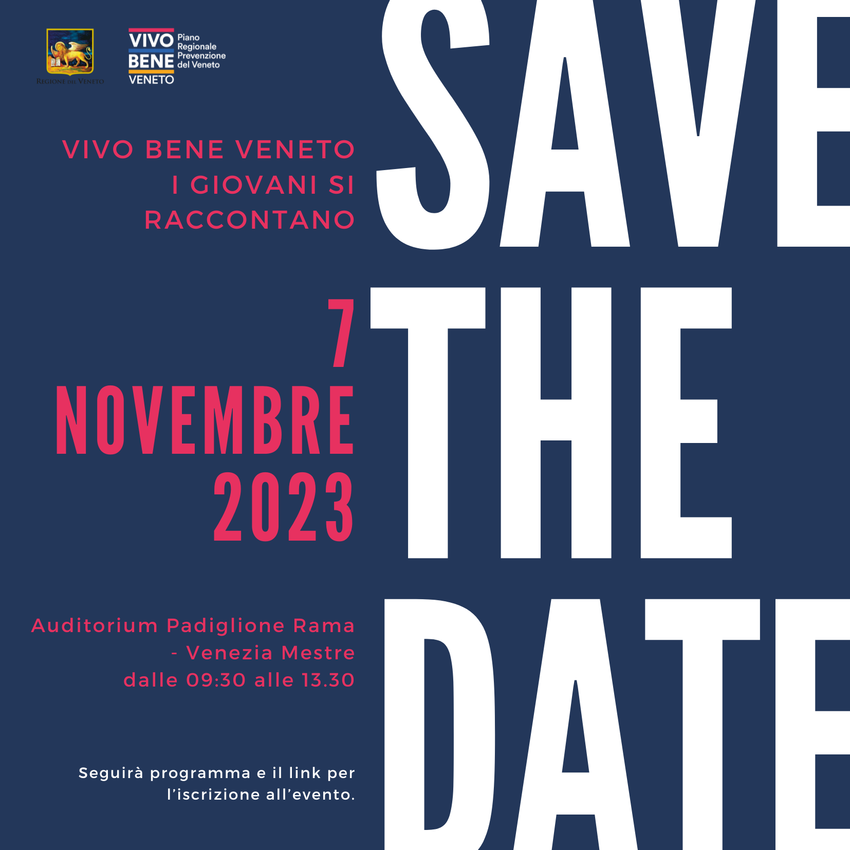 Il corrente sabato 7 ottobre all'auditorium Padiglione Rama di Mestre i giovani si raccontano nell'ambito di Vivo Bene Veneto, dalle 9.30 alle 13.30. E' nell'ambito della campagna di prevenzione della regione Veneto.